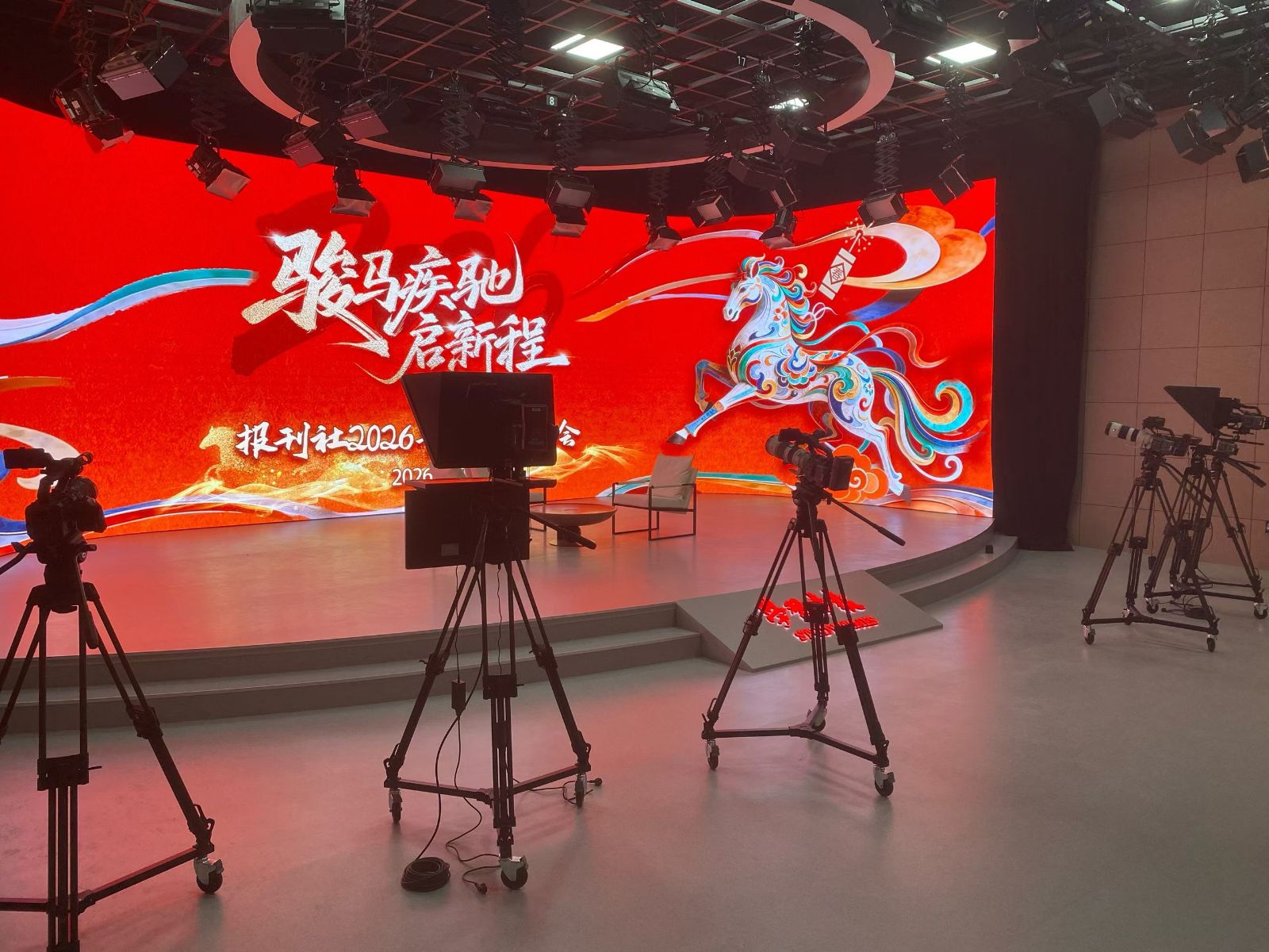 交接启用的演播室,以 4K 超高清技术为核心,配备专业摄像机、切换导播系统、LED 大屏、灯光音频等全套先进设备,兼具技术先进性与功能实用性。从前端采集到后期制作,从信号调度到现场呈现,全链路系统高效协同,为高质量内容生产提供坚实支撑。